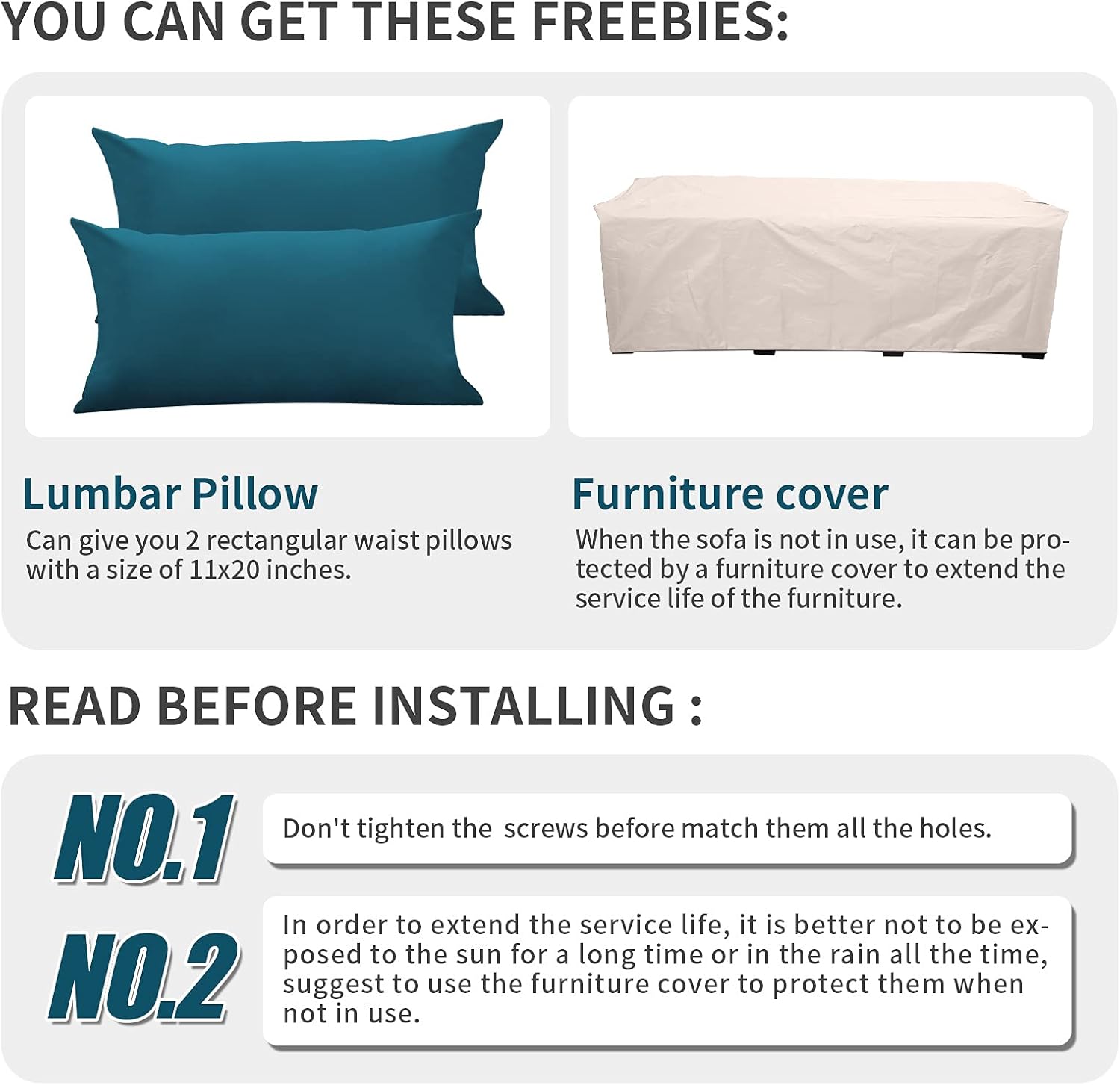 COMFORTABLE: The non-slip seat cushions are filled with 4" thick high resilience sponge for superior comfort, and the sturdy, breathable cushion cover with zipper is made of 250G polyester, which is water repellent, UV-resistant, and machine washable.